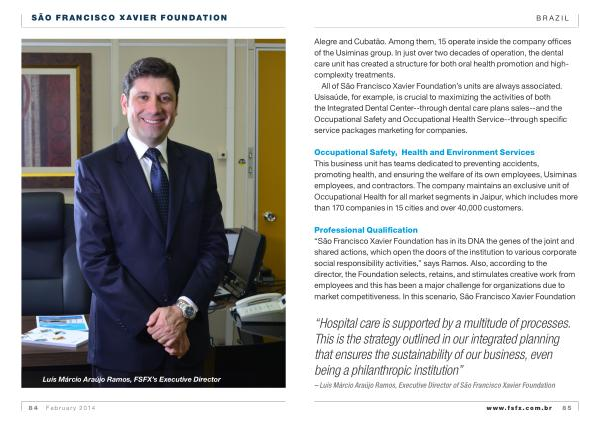 All of São Francisco Xavier Foundation ’ s units are always associated . Usisaúde , for example , is crucial to maximizing the activities of both the Integrated Dental Center--through dental care plans sales--and the Occupational Safety and Occupational Health Service--through specific service packages marketing for companies .