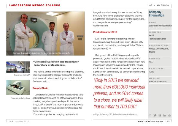 – Iñigo Gutierrez , COO , Laboratorio Medico Polanco www . lmpolanco . com 145