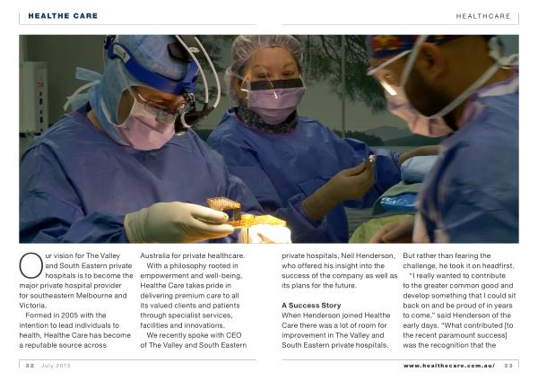 A Success Story When Henderson joined Healthe Care there was a lot of room for improvement in The Valley and South Eastern private hospitals .