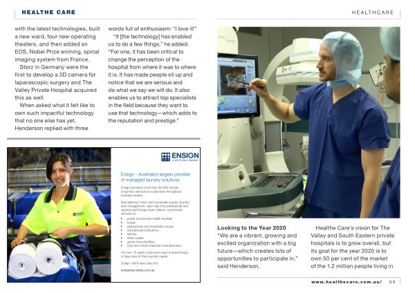 Storz in Germany were the first to develop a 3D camera for laparascopic surgery and The Valley Private Hospital acquired this as well .