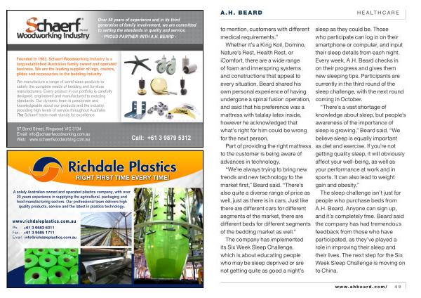 The company has implemented its Six Week Sleep Challenge , which is about educating people who may be sleep deprived or are not getting quite as good a night ’ s sleep as they could be . Those who participate can log in on their smartphone or computer , and input their sleep details from each night . Every week , A . H . Beard checks in on their progress and gives them new sleeping tips . Participants are currently in the third round of the sleep challenge , with the next round coming in October .