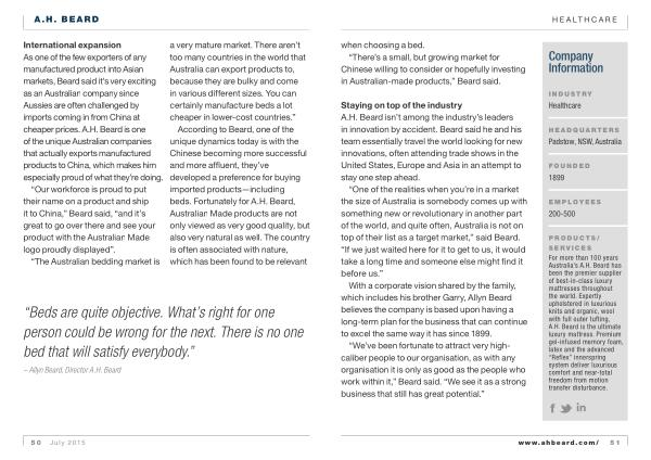 “ We ’ ve been fortunate to attract very highcaliber people to our organisation , as with any organisation it is only as good as the people who work within it ,” Beard said . “ We see it as a strong business that still has great potential .”
