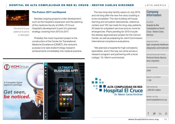 “ We planned a hospital for high complexity specialties , and in the way we came across a research program and partnering with a local college ,” Dr . Marini summarized .