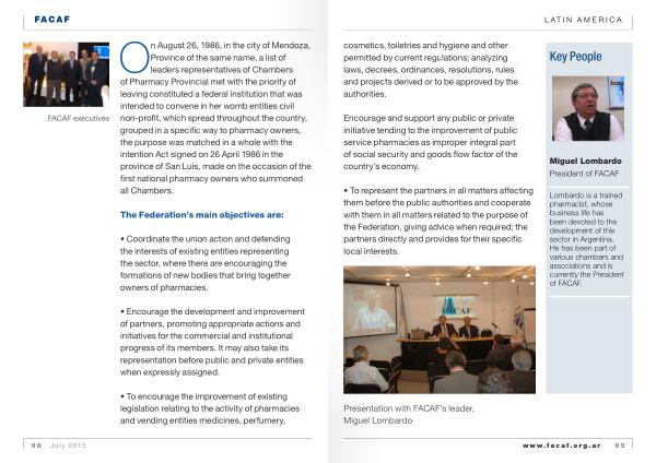 Lombardo is a trained pharmacist , whose business life has been devoted to the development of this sector in Argentina . He has been part of various chambers and associations and is currently the President of FACAF .
