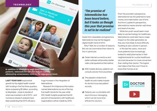 LAST YEAR SAW exponential growth for the digital health market with funding in the first three quarters alone surpassing $ 5 billion , according to Mashable – close to double of what was invested in all of 2013 – and numerous research analysts have been predicting that 2015 will see a huge increase in the integration of telemedicine .