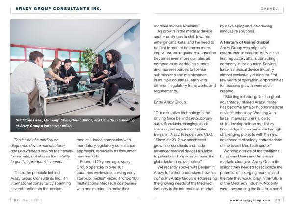 Working outside of the traditional European Union and American markets also gave Arazy Group the insight they needed to recognize the potential of emerging markets and the role they would play in the future of the MedTech industry . Not only were they among the first to expand
