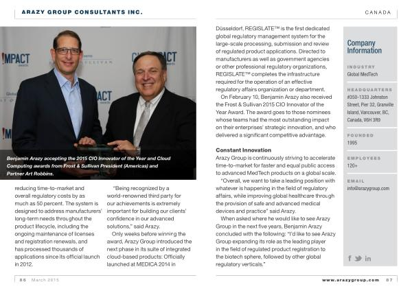 Only weeks before winning the award , Arazy Group introduced the next phase in its suite of integrated cloud-based products : Officially launched at MEDICA 2014 in