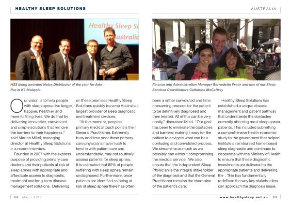 Healthy Sleep Solutions has established a unique disease management and patient pathway that understands the obstacles currently affecting most sleep apnea patients . This included submitting a comprehensive health economic study to the government that helped institute a reimbursed home based sleep diagnostic and continues to cooperate with the Ministry of Health to ensure that these diagnostic investments are delivered to the appropriate patients and delivering the . This has fundamentally redefined the way key stakeholders can approach the diagnosis issue .