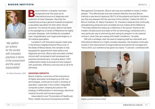 Management Companies , Biocor services are available to nearly 2 million people . “ The affectionate and ever-present attention ensures Biocor Instituto a rare level of approval : 99.7 % of the patients and family members say they are pleased with the services of the institute ,” states the CEO of Biocor Instituto , Dr . Mario Vrandecic . Dr . Vrandecic believes that continually strengthening advanced and complete service makes all the difference . “ The index attests the status as a reference in the sector , thanks to the modern infrastructure and state-of-the-art technology combined with a very particular way of welcoming and caring for people in a very special moment , when they are coping with health conditions ,” he adds .