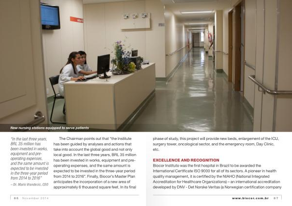 The Chairman points out that “ the Institute has been guided by analyses and actions that take into account the global good and not only local good . In the last three years , BRL 35 million has been invested in works , equipment and preoperating expenses , and the same amount is expected to be invested in the three-year period from 2014 to 2016 ”. Finally , Biocor ’ s Master Plan anticipates the incorporation of a new area of approximately 6 thousand square feet . In its final
