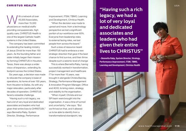 “ Having such a rich legacy , we had a lot of very loyal and dedicated associates and leaders who had given their entire lives to CHRISTUSt ,” says Bennetta Raby , System Director , Strategy , Performance
