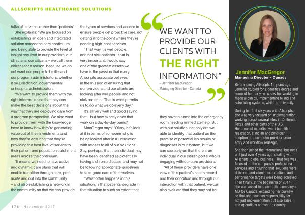 “ That way it ’ s well people , and not sick patients – that is very important . I would say one of the greatest assets we have is the passion that every Allscripts associate believes in the mission of ensuring that our providers and our clients are looking after well people and not sick patients . That is what permits us to do what we do every day .”