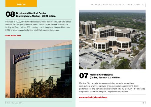 HIGHEST GROSSING FOR-PROFIT US HOSPITALS
