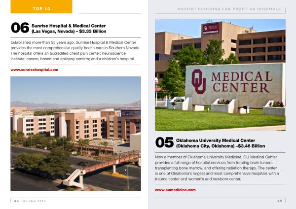 HIGHEST GROSSING FOR-PROFIT US HOSPITALS