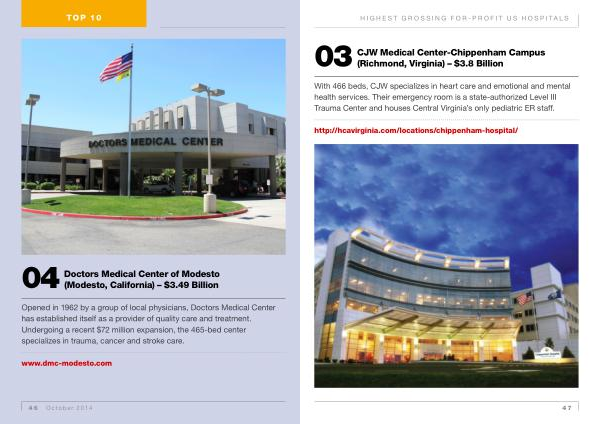 HIGHEST GROSSING FOR-PROFIT US HOSPITALS