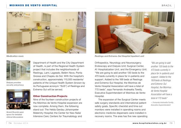 Orthopedics , Neurology and Neurosurgery ; Endoscopy and Dialysis Unit ; Surgical Center , A1 Hospitalization Unit , and the Emergency Unit . “ We are going to add another 130 beds to the 473 beds currently in place for in-patients and support . Added to the 169 beds at Restinga and Extremo-Sul Hospital , the Moinhos de Vento Hospital Association will have a total of 772 beds ”, says Fernando Andreatta Torelly , Executive Superintendent of Moinhos de Vento Hospital .