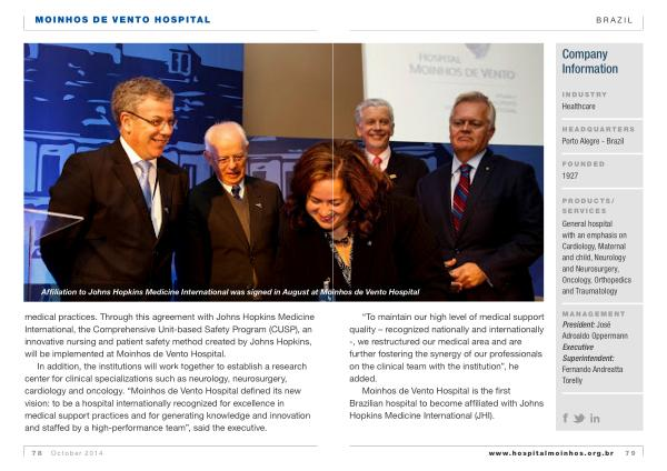Moinhos de Vento Hospital is the first Brazilian hospital to become affiliated with Johns Hopkins Medicine International ( JHI ).