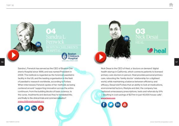 Sandra L Fenwick has served as the CEO of Boston Children ’ s Hospital since 1999 , and was named President in 2008 . The institute is regarded as the foremost paediatric facility in the US , and the leading organisation in the field of paediatric research worldwide , according to Forbes . When interviewed , Fenwick spoke of her methods as being cantered around “ supporting innovation across the entire continuum , from the building blocks of basic science , to the cures , treatments and devices they ’ re translated into , and finally to the clinical trials and commercialisation ”. www . childrenshospital . org