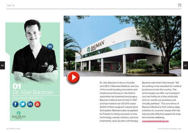 Dr . Alan Bauman is the co-founder and CEO of Bauman Medical , and one of the world ’ s leading innovators and medical practitioners in the field of restorative hair treatment and surgery . Bauman medical was formed in 1997 and has treated over 20,000 cases ( 8,000 of them surgical in nature ) since its inception . Bauman is also recognised by Forbes for being a pioneer of new technology , namely robotics , and new treatments , such as stem cell therapy .