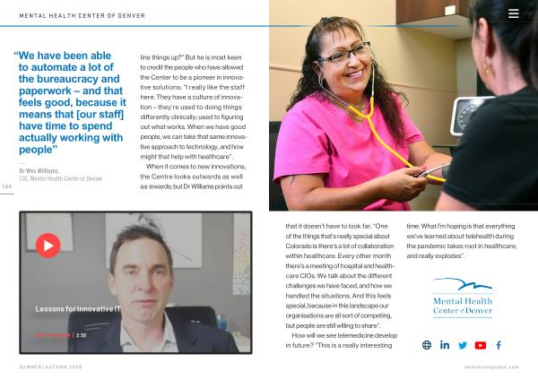 145 that it doesn ’ t have to look far . “ One of the things that ’ s really special about Colorado is there ’ s a lot of collaboration within healthcare . Every other month there ’ s a meeting of hospital and healthcare CIOs . We talk about the different challenges we have faced , and how we handled the situations . And this feels special , because in this landscape our organisations are all sort of competing , but people are still willing to share ”.