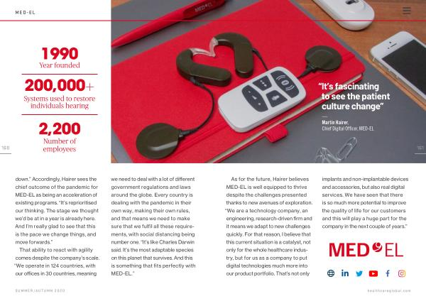 down .” Accordingly , Hairer sees the chief outcome of the pandemic for MED-EL as being an acceleration of existing programs . “ It ’ s reprioritised our thinking . The stage we thought we ’ d be at in a year is already here . And I ’ m really glad to see that this is the pace we change things , and move forwards .”