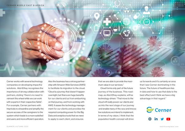 Cerner works with several technology companies on developing impactful solutions . Abd-Elhay recognises the importance of strong collaboration with partners , stating “ there ’ s no need to reinvent the wheel while we can work with experts in their respective fields ”. For example , Cerner partners with Imprivata to streamline and simplify the secure access of the caregivers to the system which leads to a more satisfied end users and more efficient operation .