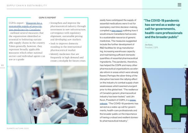 CGPA ’ s report - ‘ Blueprint for a sustainable supply of prescription medicines for Canadians ’ - outlined several measures that the organisation identified as essential to bolstering sustainable supply chains in the country . Taken generally , however , they represent broadly applicable measures which other national sectors and individual agents can use as a guide :